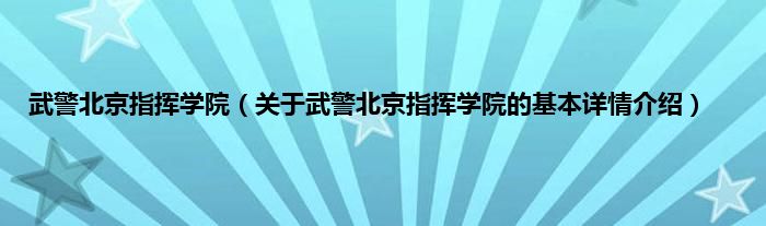 本文关于武警北京指挥学院的基本详情介绍就讲解完毕,希望对大家有所帮助。