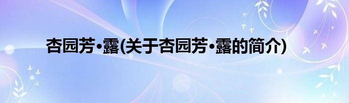 大家好,杏园芳·露,关于杏园芳·露的简介很多人还不知道,现在让我们一起来看看吧!