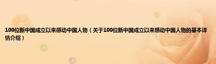 本文关于100位新中国成立以来感动中国人物的基本详情介绍就讲解完毕,希望对大家有所帮助。