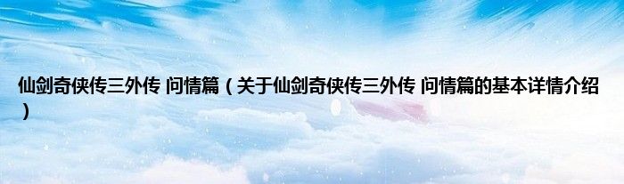 本文关于仙剑奇侠传三外传 问情篇的基本详情介绍就讲解完毕,希望对大家有所帮助。