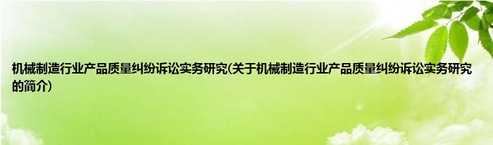 本文关于机械制造行业产品质量纠纷诉讼实务研究的简介就讲解完毕,希望对大家有所帮助。
