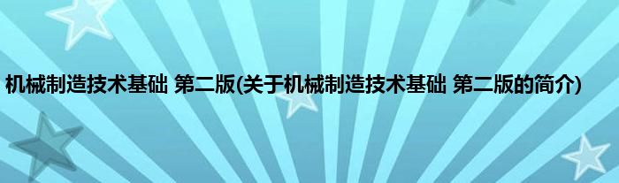 本文关于机械制造技术基础 第二版的简介就讲解完毕,希望对大家有所帮助。