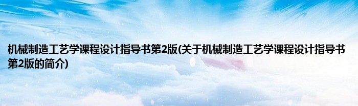 本文关于机械制造工艺学课程设计指导书第2版的简介就讲解完毕,希望对大家有所帮助。