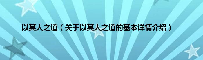 本文关于以其人之道的基本详情介绍就讲解完毕,希望对大家有所帮助。