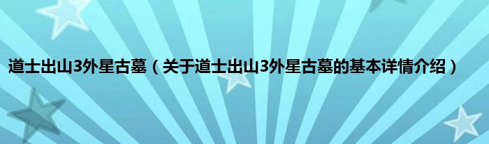 本文关于道士出山3外星古墓的基本详情介绍就讲解完毕,希望对大家有所帮助。