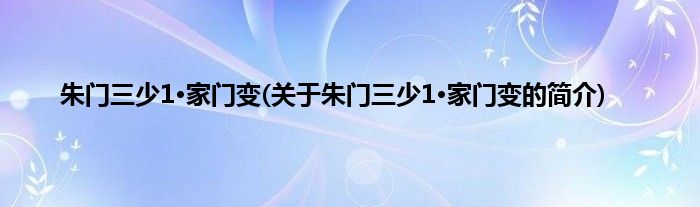 大家好,朱门三少1·家门变,关于朱门三少1·家门变的简介很多人还不知道,现在让我们一起来看看吧!
