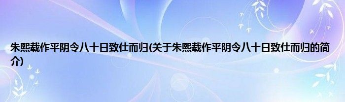 本文关于朱熙载作平阴令八十日致仕而归的简介就讲解完毕,希望对大家有所帮助。