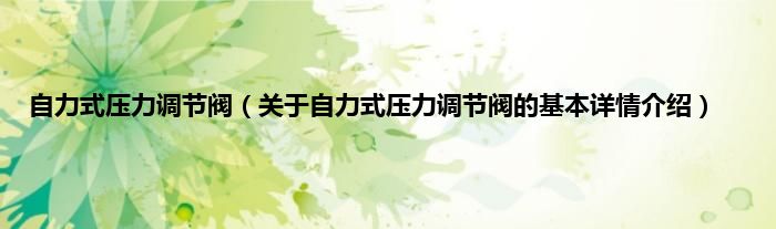 本文关于自力式压力调节阀的基本详情介绍就讲解完毕,希望对大家有所帮助。