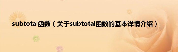 本文关于subtotal函数的基本详情介绍就讲解完毕,希望对大家有所帮助。