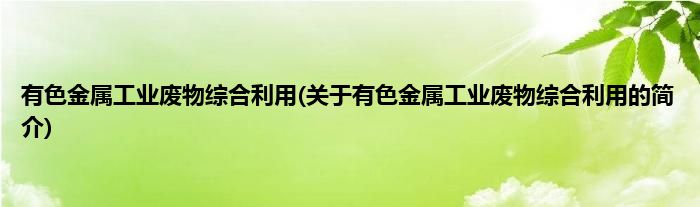 本文关于有色金属工业废物综合利用的简介就讲解完毕,希望对大家有所帮助。