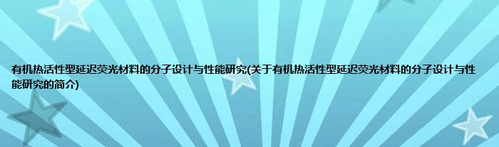 有机热活性型延迟荧光材料的分子设计与性能研究(关于有机热活性型延迟荧光材料的分子设计与性能研究的简介)