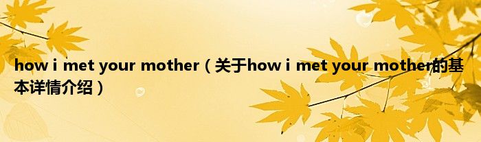本文关于how i met your mother的基本详情介绍就讲解完毕,希望对大家有所帮助。
