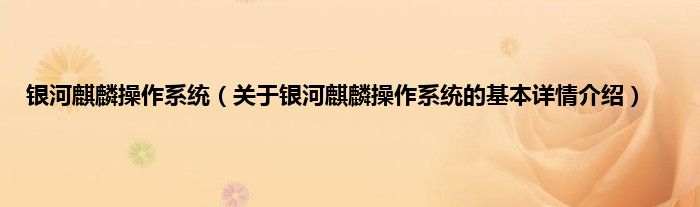 本文关于银河麒麟操作系统的基本详情介绍就讲解完毕,希望对大家有所帮助。