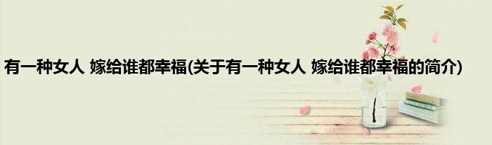 大家好,有一种女人,嫁给谁都幸福,关于有一种女人,嫁给谁都幸福的简介很多人还不知道,现在让我们一起来看看吧!