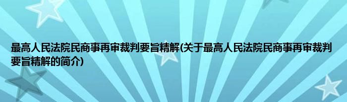 本文关于最高人民法院民商事再审裁判要旨精解的简介就讲解完毕,希望对大家有所帮助。