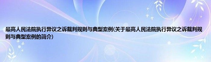 大家好,最高人民法院执行异议之诉裁判规则与典型案例,关于最高人民法院执行异议之诉裁判规则与典型案例的简介很多人还不知道,现在让我们一起来看看吧!