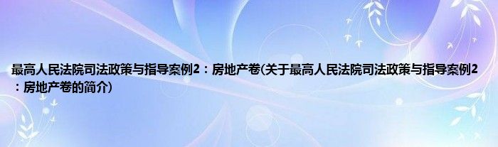 本文关于最高人民法院司法政策与指导案例2:房地产卷的简介就讲解完毕,希望对大家有所帮助。