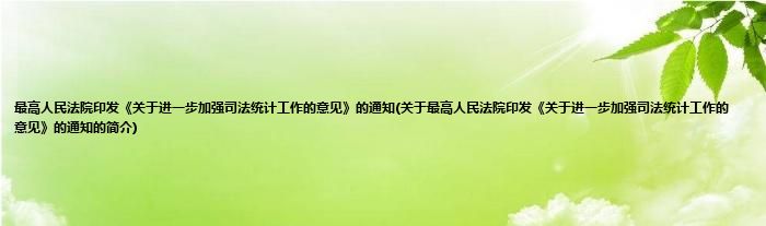大家好,最高人民法院印发《关于进一步加强司法统计工作的意见》的通知,关于最高人民法院印发《关于进一步加强司法统计工作的意见》的通知的简介很多人还不知道,现在让我们一起来看看吧!