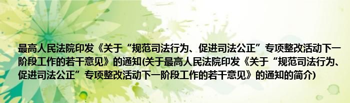 本文关于最高人民法院印发《关于“规范司法行为、促进司法公正”专项整改活动下一阶段工作的若干意见》的通知的简介就讲解完毕,希望对大家有所帮助。
