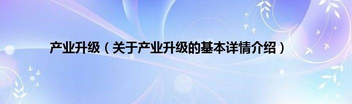 本文关于产业升级的基本详情介绍就讲解完毕,希望对大家有所帮助。