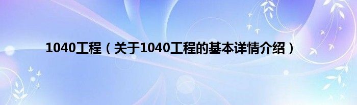 大家好我是小蝌蚪,1040工程,关于1040工程的基本详情介绍很多人还不知道,那么现在让我们一起来看看吧!