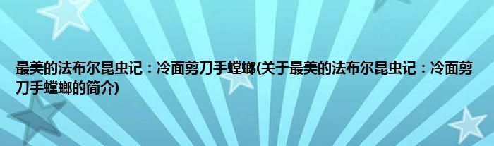 本文关于最美的法布尔昆虫记:冷面剪刀手螳螂的简介就讲解完毕,希望对大家有所帮助。