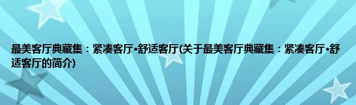 最美客厅典藏集:紧凑客厅·舒适客厅(关于最美客厅典藏集:紧凑客厅·舒适客厅的简介)