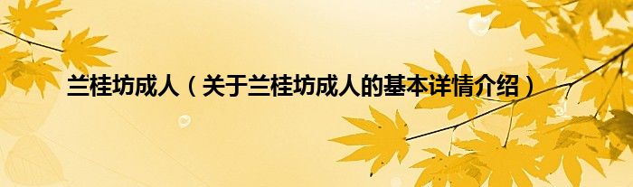 大家好我是小蝌蚪,兰桂坊成人,关于兰桂坊成人的基本详情介绍很多人还不知道,那么现在让我们一起来看看吧!