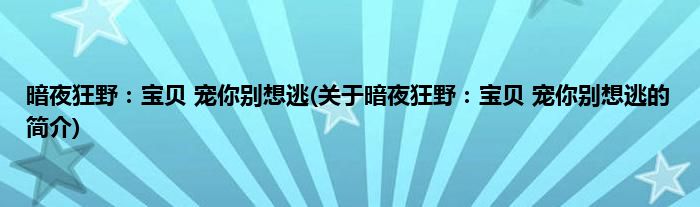 本文关于暗夜狂野:宝贝,宠你别想逃的简介就讲解完毕,希望对大家有所帮助。