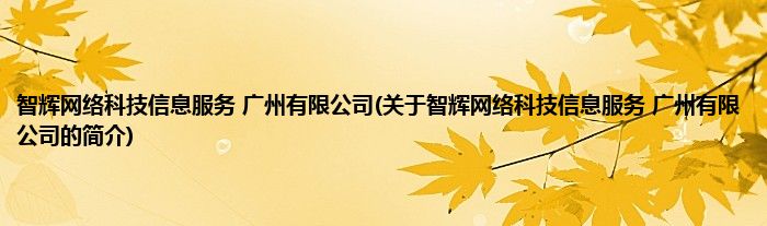 本文关于智辉网络科技信息服务 广州有限公司的简介就讲解完毕,希望对大家有所帮助。