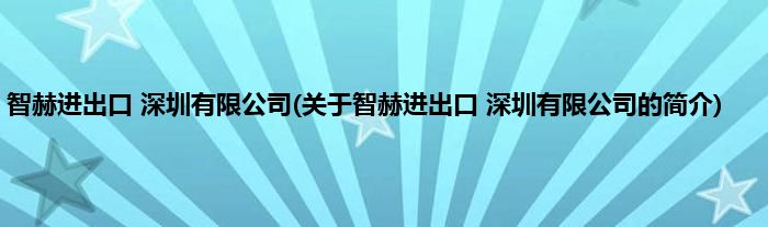 本文关于智赫进出口 深圳有限公司的简介就讲解完毕,希望对大家有所帮助。
