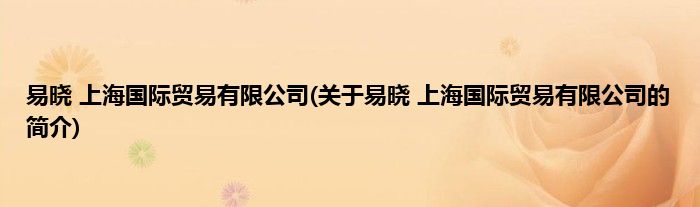 本文关于易晓 上海国际贸易有限公司的简介就讲解完毕,希望对大家有所帮助。