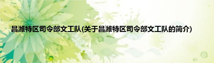 本文关于昌潍特区司令部文工队的简介就讲解完毕,希望对大家有所帮助。