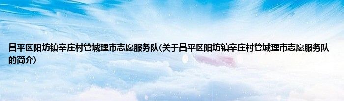 本文关于昌平区阳坊镇辛庄村管城理市志愿服务队的简介就讲解完毕,希望对大家有所帮助。
