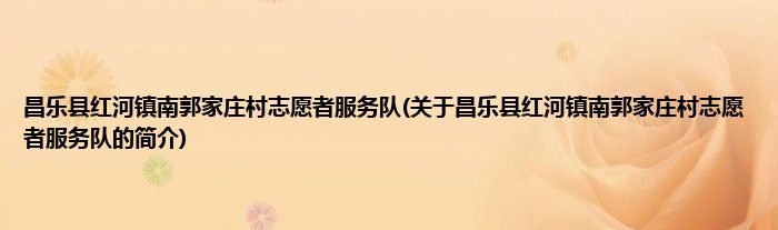 昌乐县红河镇南郭家庄村志愿者服务队(关于昌乐县红河镇南郭家庄村志愿者服务队的简介)