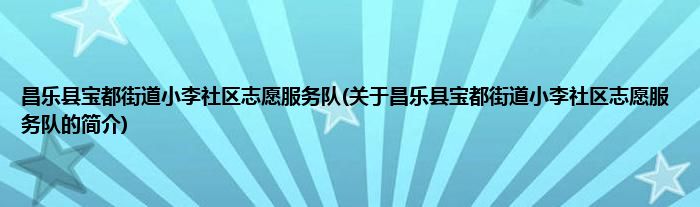昌乐县宝都街道小李社区志愿服务队(关于昌乐县宝都街道小李社区志愿服务队的简介)
