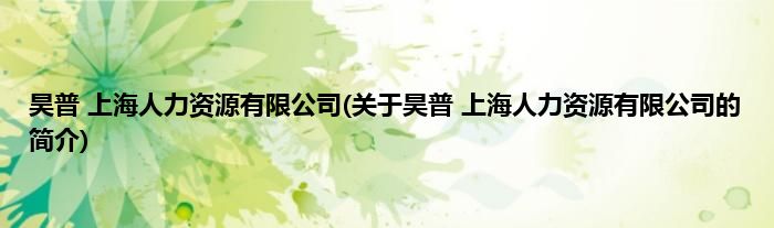 本文关于昊普 上海人力资源有限公司的简介就讲解完毕,希望对大家有所帮助。