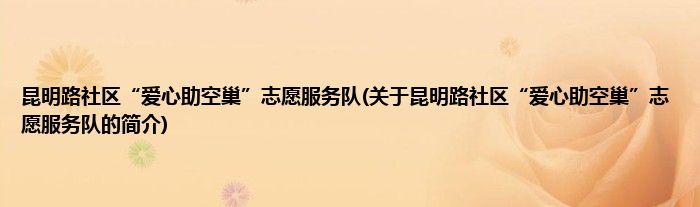 昆明路社区“爱心助空巢”志愿服务队(关于昆明路社区“爱心助空巢”志愿服务队的简介)
