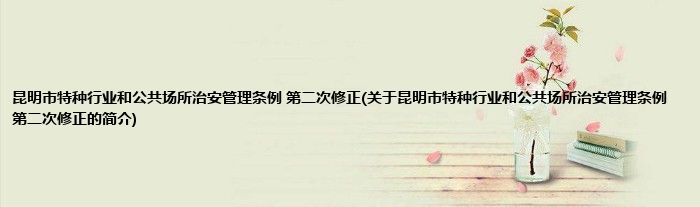 大家好,昆明市特种行业和公共场所治安管理条例 第二次修正,关于昆明市特种行业和公共场所治安管理条例 第二次修正的简介很多人还不知道,现在让我们一起来看看吧!