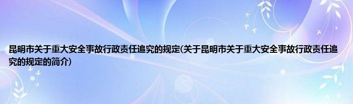 昆明市关于重大安全事故行政责任追究的规定(关于昆明市关于重大安全事故行政责任追究的规定的简介)
