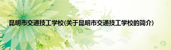 本文关于昆明市交通技工学校的简介就讲解完毕,希望对大家有所帮助。