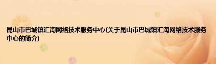 本文关于昆山市巴城镇汇淘网络技术服务中心的简介就讲解完毕,希望对大家有所帮助。