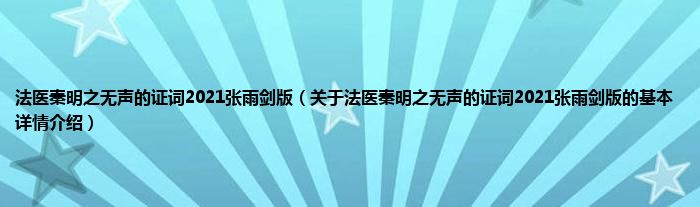 本文关于法医秦明之无声的证词2021张雨剑版的基本详情介绍就讲解完毕,希望对大家有所帮助。