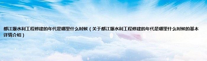 本文关于都江堰水利工程修建的年代是哪里什么时候的基本详情介绍就讲解完毕,希望对大家有所帮助。