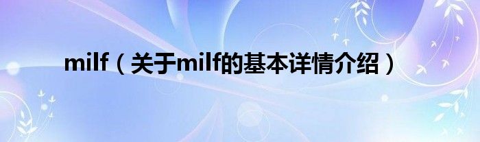本文关于milf的基本详情介绍就讲解完毕,希望对大家有所帮助。