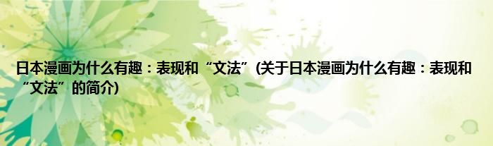 本文关于日本漫画为什么有趣:表现和“文法”的简介就讲解完毕,希望对大家有所帮助。