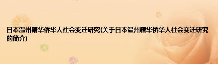 本文关于日本温州籍华侨华人社会变迁研究的简介就讲解完毕,希望对大家有所帮助。