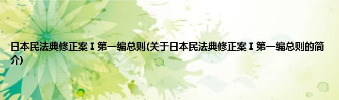 日本民法典修正案Ⅰ第一编总则(关于日本民法典修正案Ⅰ第一编总则的简介)