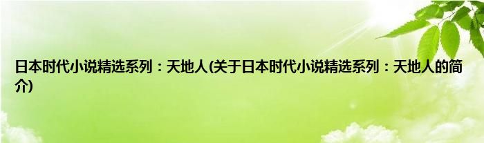 大家好,日本时代小说精选系列:天地人,关于日本时代小说精选系列:天地人的简介很多人还不知道,现在让我们一起来看看吧!