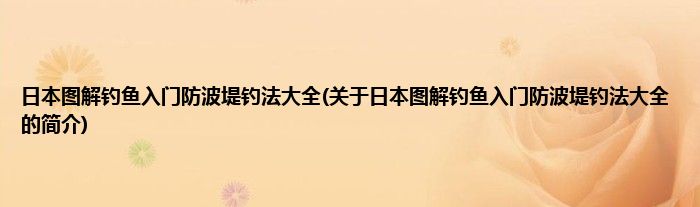 本文关于日本图解钓鱼入门防波堤钓法大全的简介就讲解完毕,希望对大家有所帮助。